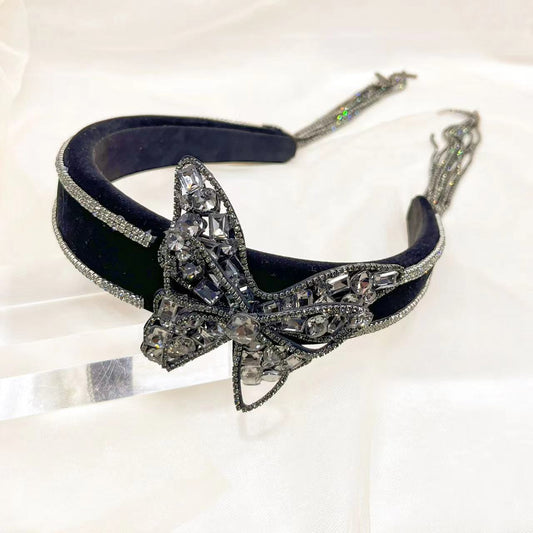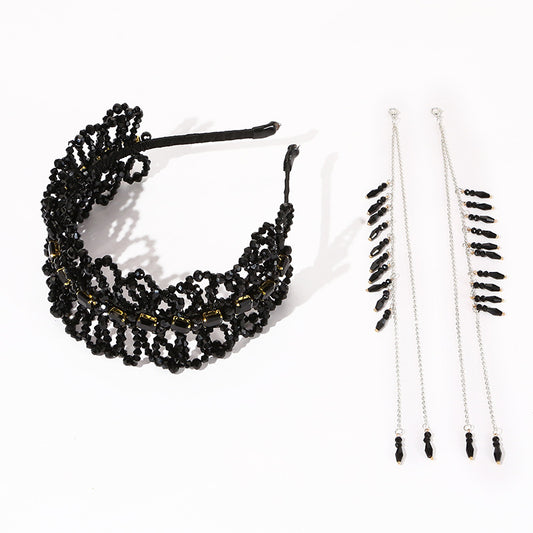 Luxurious Black Crystal Handmade Knitted Tassel Headband