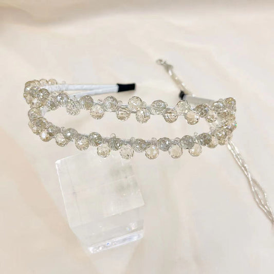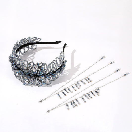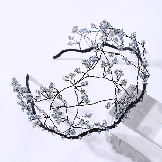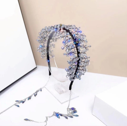 Luxurious Blue Crystal Handmade Knitted Beads Headband