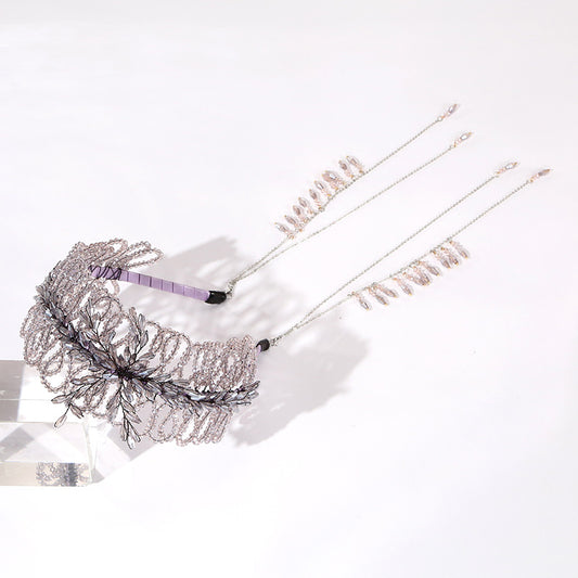 Handmade Knitted Crystal Headband with Detachable Tassel