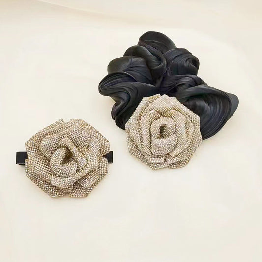 Diamond Flower Hair Clips Claws Bun Updo Holders