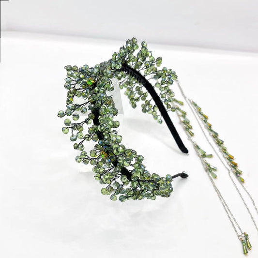 Luxurious Green Crystal Handmade Knitted Tassel Headband