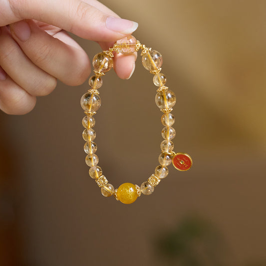 Golden Rutilated Quartz Natural Yellow Crystal Bracelet