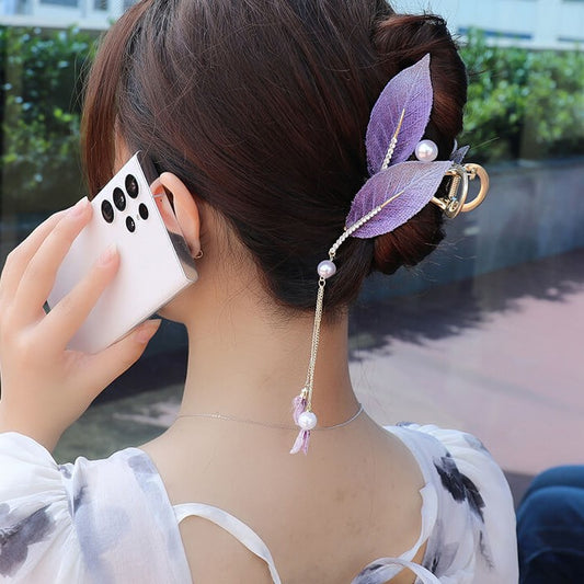 Vintage Leaves Pearl Tassel Large Hair Claw Clips