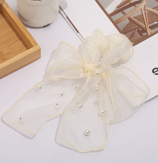 Pearl Bowknow Mesh Hair Tie Scruchies