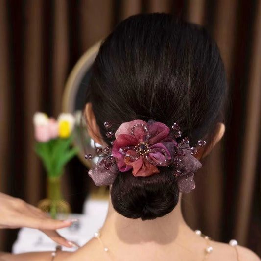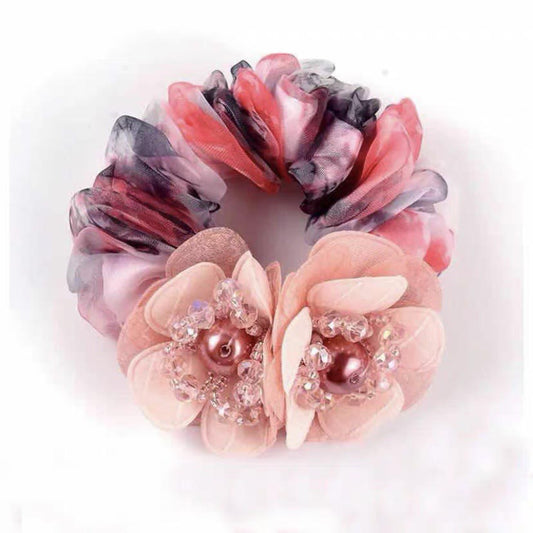 Crystal Large Flower Mesh Hair Tie Scruchies
