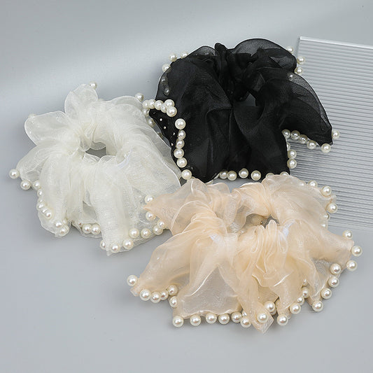 Large Mesh Pearl Ponytail Holder Hair Scruchies